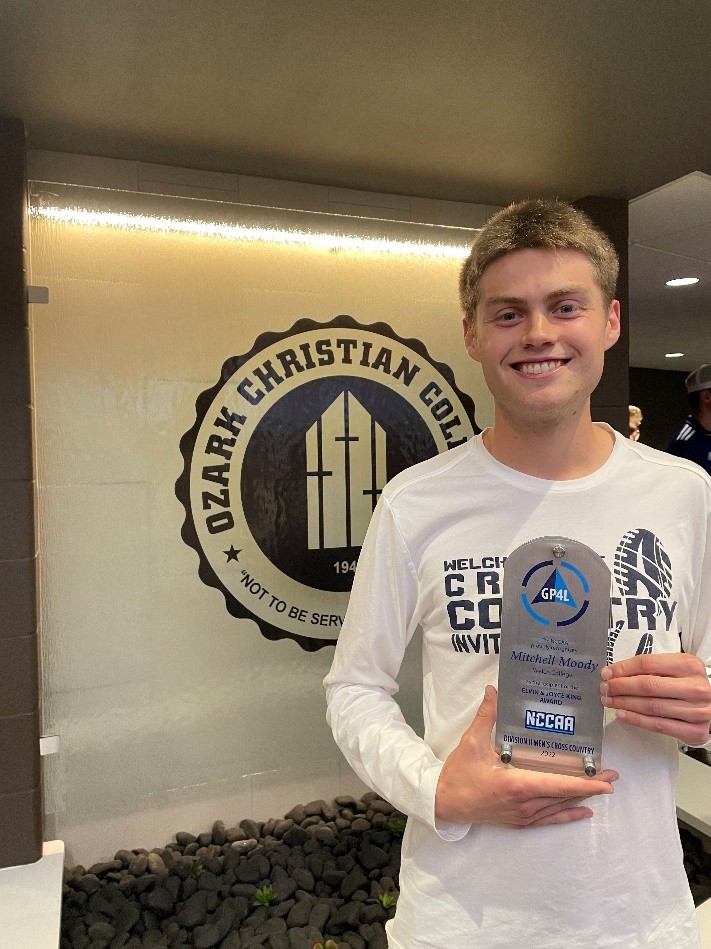 ‘Mitchell Moody has received the Elvin and Joyce King Award Division II Men’s cross country from the NCCAA. This award says, “The NCCAA honors student-athletes for excellence in their Christian testimony, in the classroom, and in their sport.”